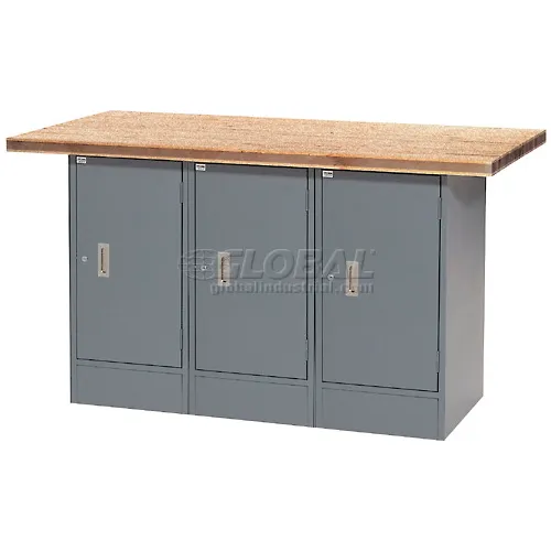 Global Industrial™ Workbench w/ Shop Top Square Edge & 3 Cabinets, 60"W x 30"D, Gray
