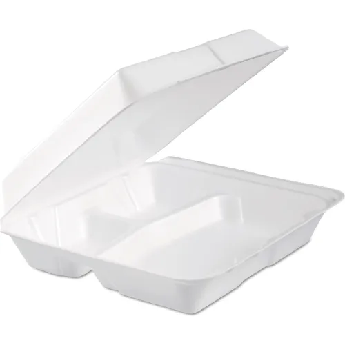Dart® 3-Comp. Hinged Lid Container, 9-5/16"L x 9-1/2"W x 3"H, White, 100/Bag, 2 Bag/Carton