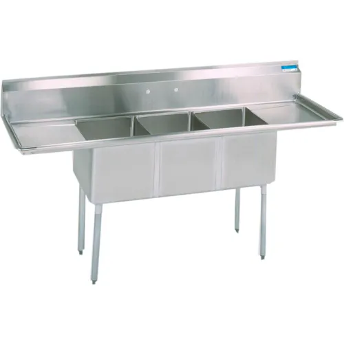 BK Resources® 3-Compartment Sink, 18X18X12 Deep, 8 Faucet Holes, 18 Drainboardss