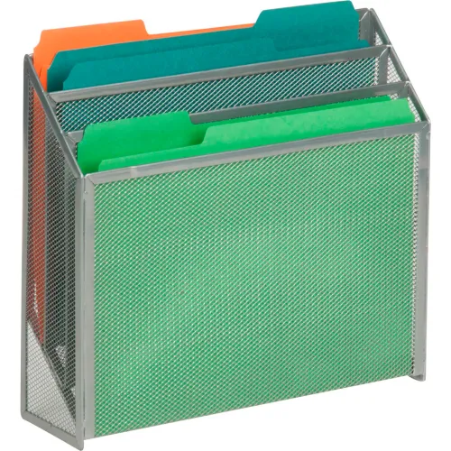 Honey-Can-Do 3-Compartment Steel Vertical File Desk Sorter - Gray