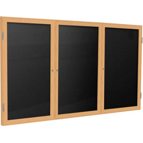 Ghent Enclosed Letter Board - 3 Door - Black Letterboard w/Oak Frame - 48" x 72"