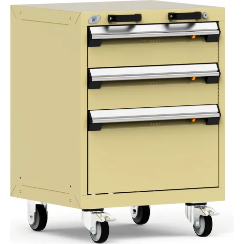 Rousseau Metal 3 Drawer Heavy-Duty Mobile Modular Drawer Cabinet - 24"Wx21"Dx33-1/4"H Beige