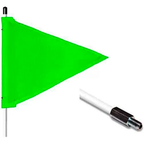 3' Heavy Duty Standard Threaded Hex Base Warning Whip w/o Light, 12"x9" Green Triangle Flag