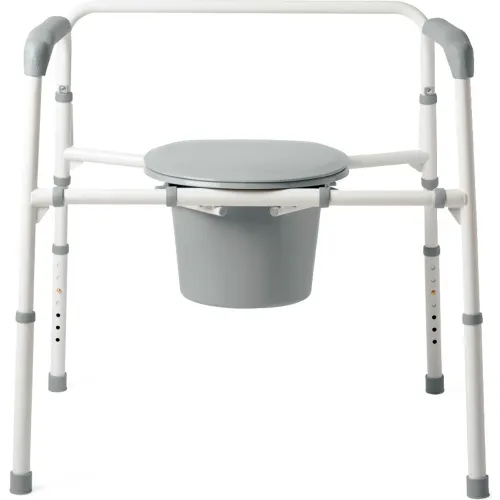 Medline 3 in 1 Elongated Bariatric Steel Folding Commode, 650 lb. Capacity