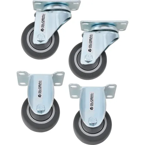 Global Industrial 3" TPR Rubber Caster Kit For 6-8BU Plastic Bulk Box Truck, 2 Swivel/2 Rigid