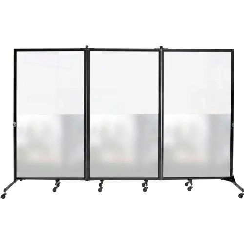 Screenflex 3 Panel Foldable Divider, 6'2"H x 10'0"W, Bottom 1/2 Frosted