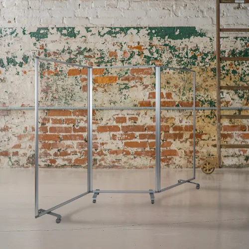 Flash Furniture 3 Panel Transparent Acrylic Mobile Partition with Lockable Casters-106-1/2"W x 72"H