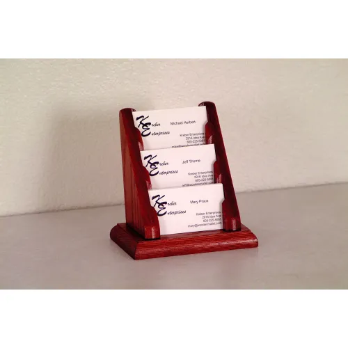 3 Pocket Counter Top Business Card Holder - Mahogany