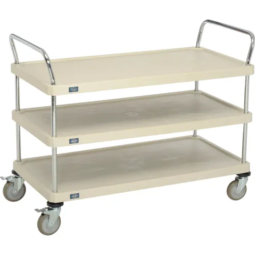 Nexel®, 3 Shelf, Utility Cart, Solid Plastic, 48"Wx24"Dx39"H, Poly Casters,4 Swivel, 2 Brake