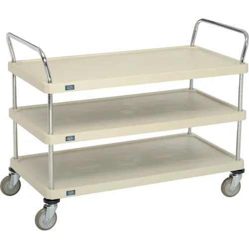 Nexel®, 3 Shelf, Utility Cart, Solid Plastic, 48"Wx24"Dx39"H, Poly Casters,4 Swivel