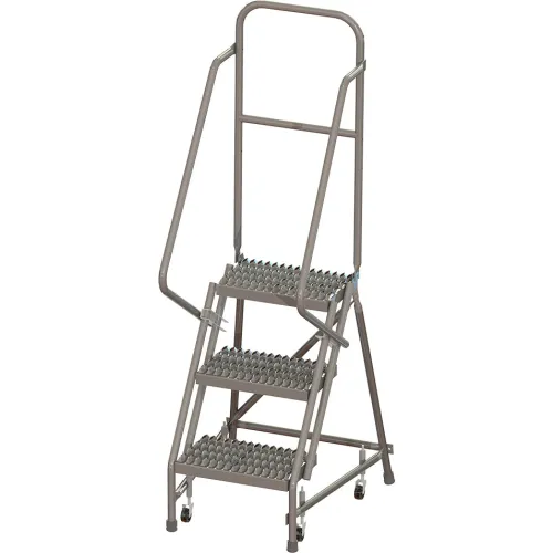 3 Step 16"W 20"D Top Step Steel Rolling Ladder, Grip Strut Tread, 36" Handrail - KDSR103162-D2