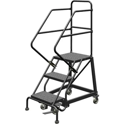 3 Step 16"W Steel Safety Angle Rolling Ladder, Perforated Tread, Gray - KDEC103166