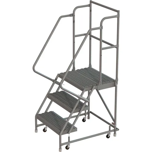 3 Step 24"W 20"D Top Step Steel Rolling Ladder, Grip Strut Tread, 36" Handrail - KDSR103242-D2