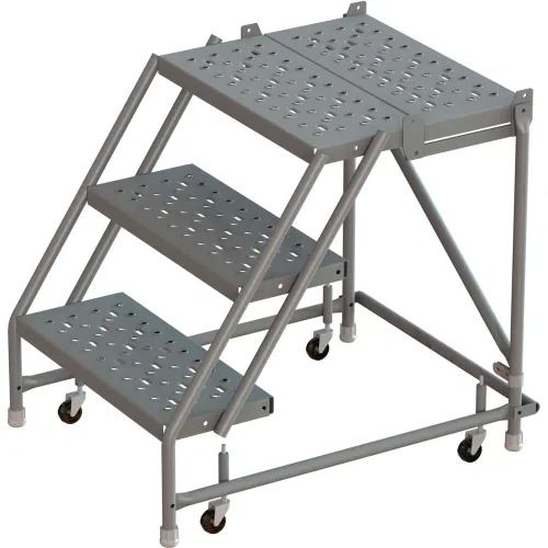 3 Step 24"W 30"D Top Step Steel Rolling Ladder, Perforated Tread, No Handrail - KDSR003246-D3