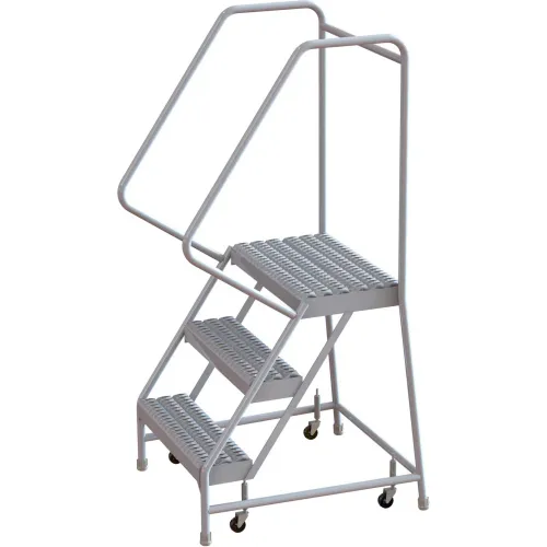 3 Step Aluminum Rolling Ladder, 16"W Grip Step, 30" Handrails - WLAR103165