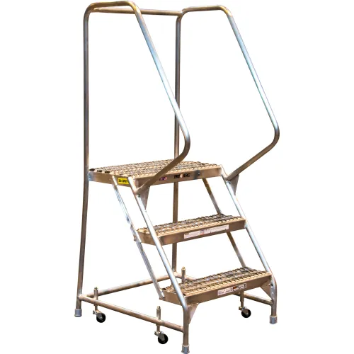 3 Step Aluminum Rolling Ladder, 24"W Grip Step, 30" Handrails - WLAR103245