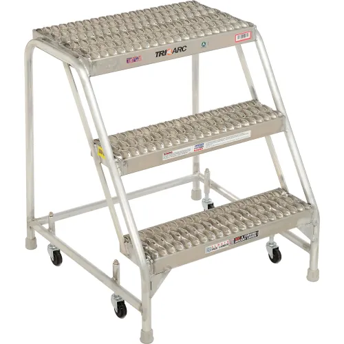 3 Step Aluminum Rolling Ladder, 24"W Grip Step, W/O Handrails - WLAR003245