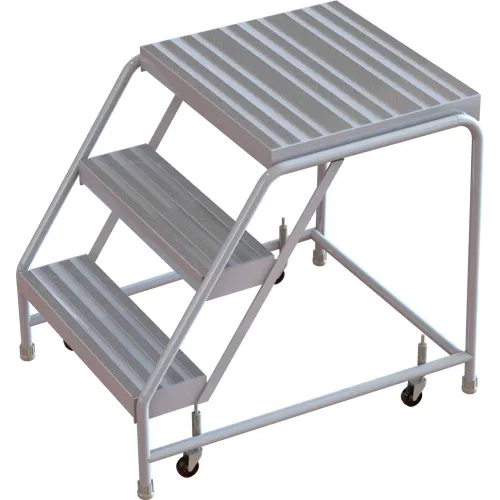 3 Step Aluminum Rolling Ladder, 24"W Ribbed Tread, 21"D Top Step, W/O Handrails - WLAR003244-D4
