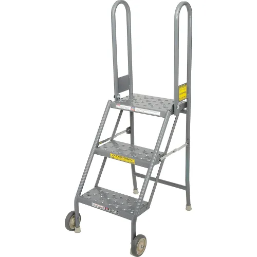 3 Step Folding Rolling Ladder Stand - Perforated Tread - KDMF103166