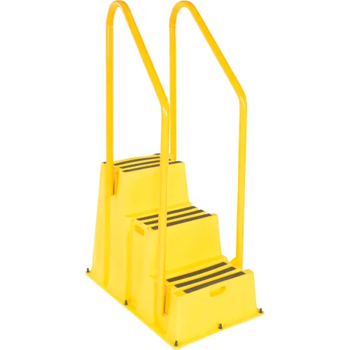 Vestil 3 Step Polyethylene Nestable Stool with Handrails, 42"L x 25"W x 70"H, Yellow