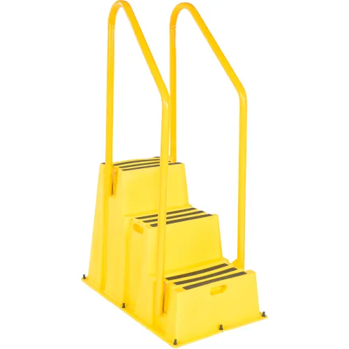 Vestil 3 Step Polyethylene Nestable Stool with Handrails, 45-5/8"L x 25"W x 68-1/4"H, Yellow