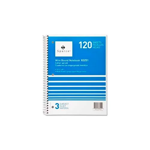 Sparco™ 3-Subject Notebook, 8" x 10-1/2", Wide Ruled, Bright White, 120 Sheets/Pad