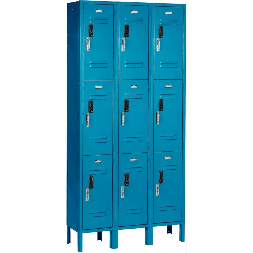 Global Industrial 3-Tier 9 Door Digital Locker, 36"W x 15"D x 78"H, Blue, Assembled
