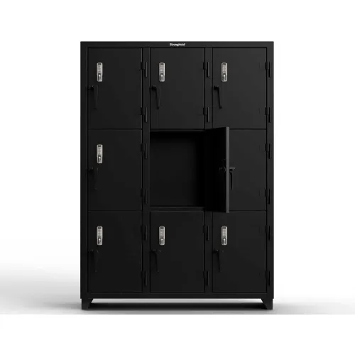 Strong Hold 3-Tier 9 Door Extra Heavy Duty Digital Locker, 54"W x 18"D x 75"H, Black, Assembled