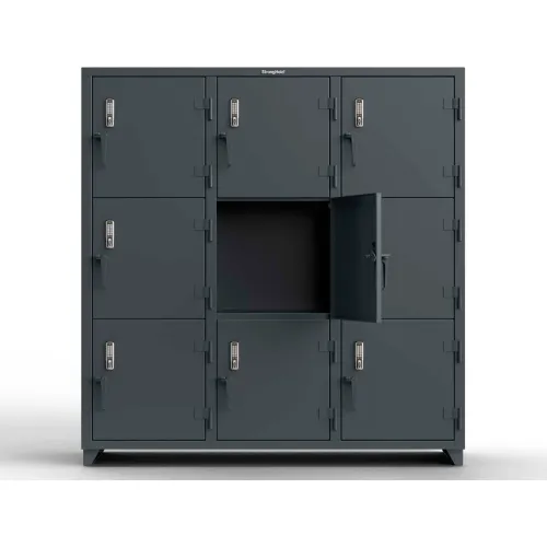 Strong Hold 3-Tier 9 Door Extra Heavy Duty Digital Locker, 72"W x 24"D x 75"H, Dark Gray, Assembled
