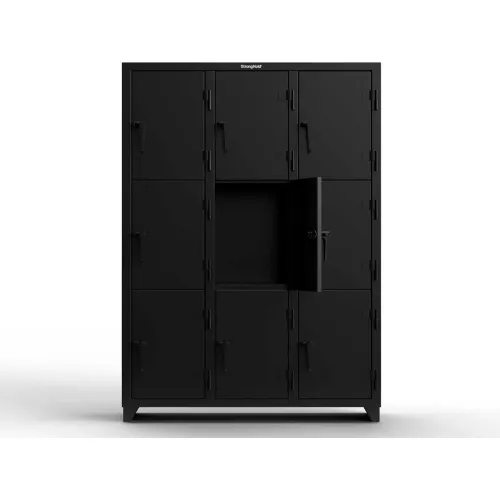 Strong Hold 3-Tier 9 Door Extra Heavy Duty Locker, 54"W x 18"D x 75"H, Black, Assembled
