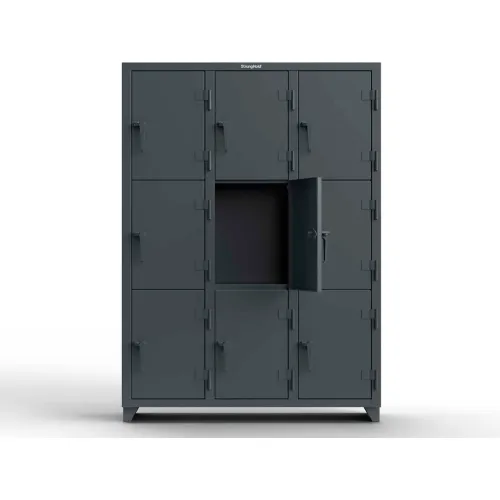 Strong Hold 3-Tier 9 Door Extra Heavy Duty Locker, 54"W x 18"D x 75"H, Dark Gray, Assembled