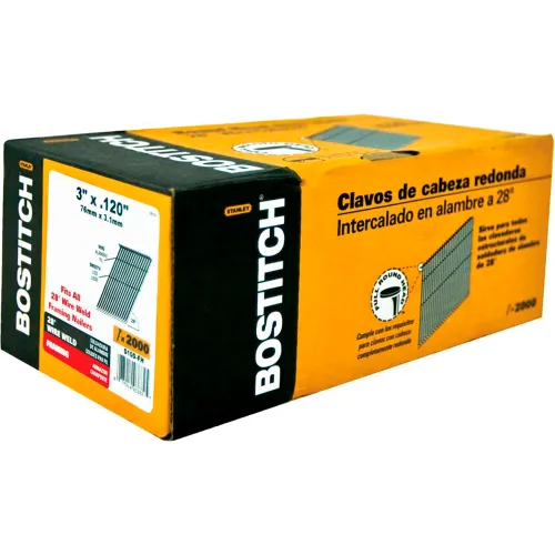 Bostitch 3" x .120" Screw Shank 28 Degree Wire Collated Full Round Head Stick Framing Nails,2000/Qty