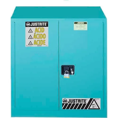 Justrite 30 Gal. Acid Cabinet, Manual Close, 2 Door, 36"W x 24"D x 35"H, Blue