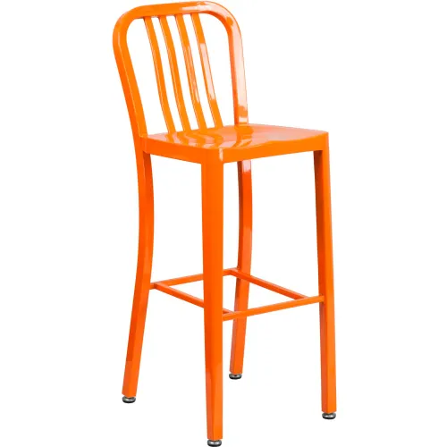 Flash Furniture 30"H Orange Metal Barstool with Vertical Slat Back