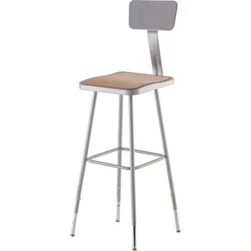 NPS Heavy Duty Stool with Backrest - Square - Hardboard - Height Adjustable 31" - 38" - Gray