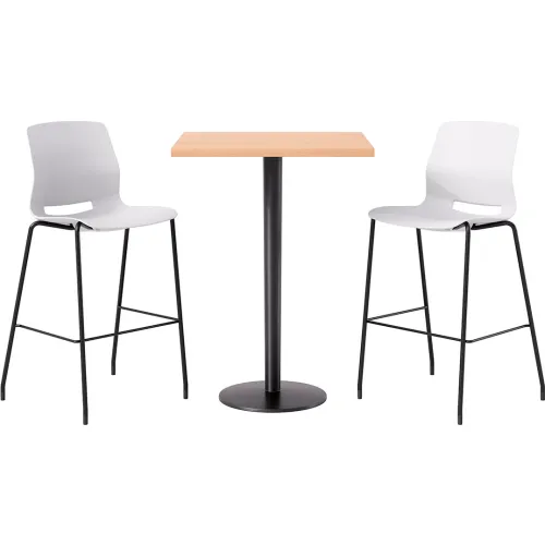 KFI 30" Square Table with 2 Imme Armless Barstools, White Seat/Maple Top