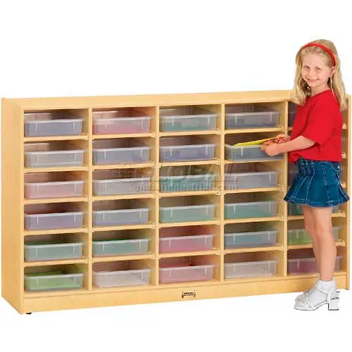 Jonti-Craft® 30 Tray Mobile Cubbie Without Paper-Trays, 60"W x 15"D x 35-1/2"H, Birch Plywood