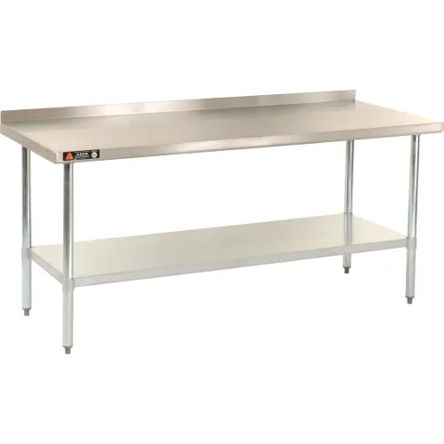 Aero Manufacturing 430 Stainless Steel Table, 30 x 24", Undershelf, 2-1/4" Backsplash, 18 Gauge