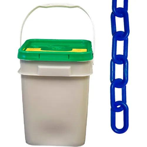 Mr. Chain Plastic Chain Barrier In A Pail, 1-1/2"x300'L, Traffic Blue