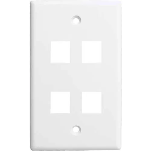 Vertical Cable, 304-J2642/4P/WH, Quad (4) Port Keystone Wall Plate (Flush) White