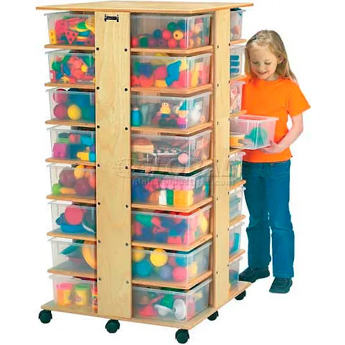 Jonti-Craft® 32 Cubbie Mobile Tower With Clear Tubs, 27"W x 27"D x 53-3/4"H, Birch Plywood