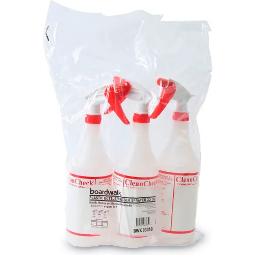 Boardwalk® 32 oz. Trigger Spray Bottle, Clear/Red, HDPE Plastic, 3/Pack
