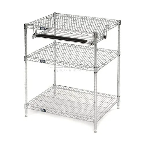 Nexel Chrome Wire Shelf Computer Workstation with Keyboard Tray, 30"W x 24"D x 34"H