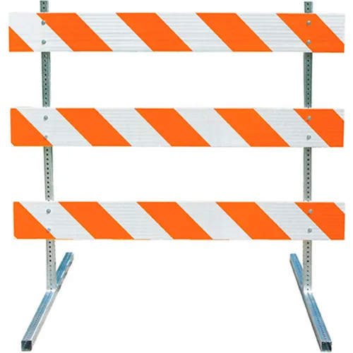 Plasticade Type III Barricade W/ Steel Square Tube Uprights & Feet, HIP Striped Sheeting, 72'' L