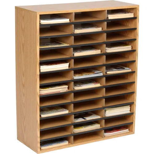 36 Compartment Wood Literature Sorter - 34-1/2"H Oak