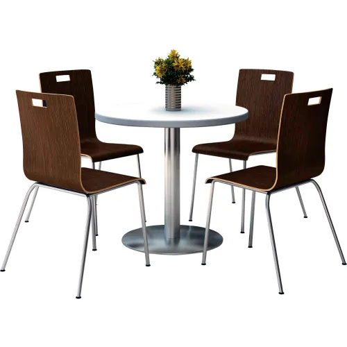 KFI 36" Round Dining Table & 4 Chair Set, Crisp Linen Table Table With Espresso Chairs