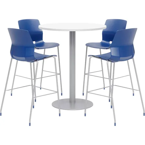 KFI 36" Round Bistro Table & 4 Barstool Set, White Table With Navy Stools