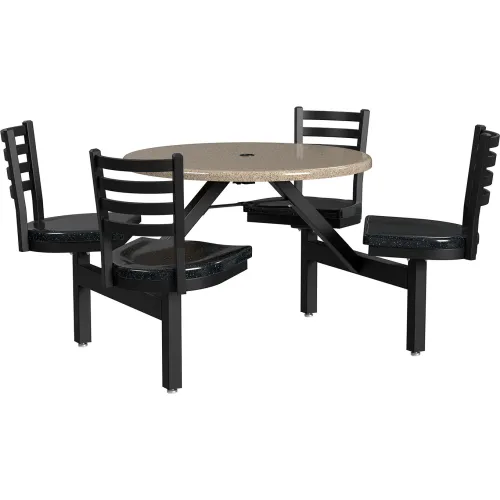 Global Industrial 36" Round Picnic Table, Fiberglass, Cappuccino Top, Obsidian Swivel Seats