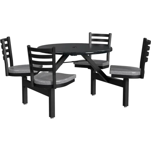 Global Industrial 36" Round Picnic Table, Fiberglass, Obsidian Top, Gray Swivel Seats