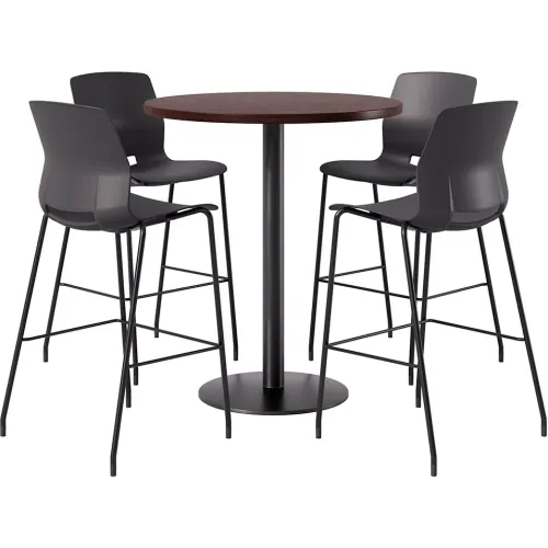 KFI 36" Round Table with 4 Imme Armless Barstools, Black Seat/Espresso Top